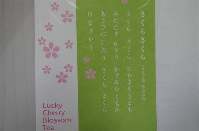 こちらには、英語で「Lucky Cherry Blossm Tea」と書かれている。