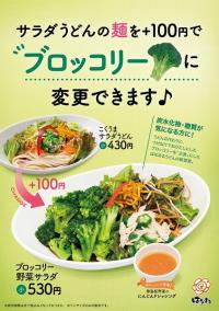 運営会社のはなまるに取材すると「ブロッコリー野菜サラダ」は、「はなまるうどん 八丁堀店」(東京都中央区)のみで9月29日から10月12日までの2週間限定で提供しているという。「炭水化物・糖質が気になる方に!」という文言があるように、糖質カットを意識したメニュー。