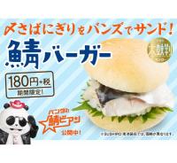 回転寿司チェーン「スシロー」は、しめ鯖のにぎりをバンズでサンドした「鯖バーガー」を販売している。価格は180円(税別)。