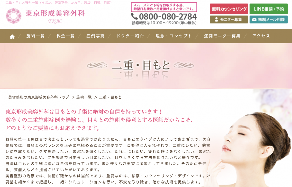 東京形成美容外科の二重整形のプランと料金