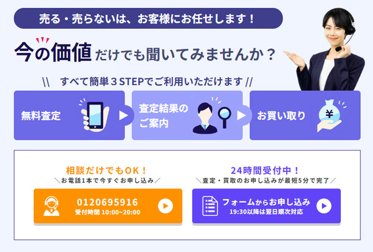 査定スタッフの対応面でも良い口コミのあるサービスですので、初めて買取を利用する方でも安心して利用することができますよ。気になった方はぜひ公式サイトもチェックしてくださいね。