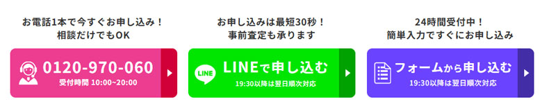 | 入金までの期間 | 最短即日 | 最短即日 | 最短即日 |