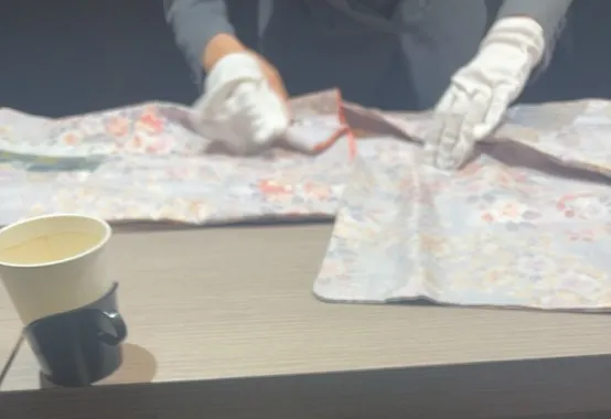 査定の際は専用の手袋をつけてとても丁寧に実施してくれます。着物の査定は素材が正絹であるかも重要で、それを手触りなどでて確かめているようでした。また、その場の査定員さんだけでなく、本部とも連絡を取ったうえで価格を決めているとの事。