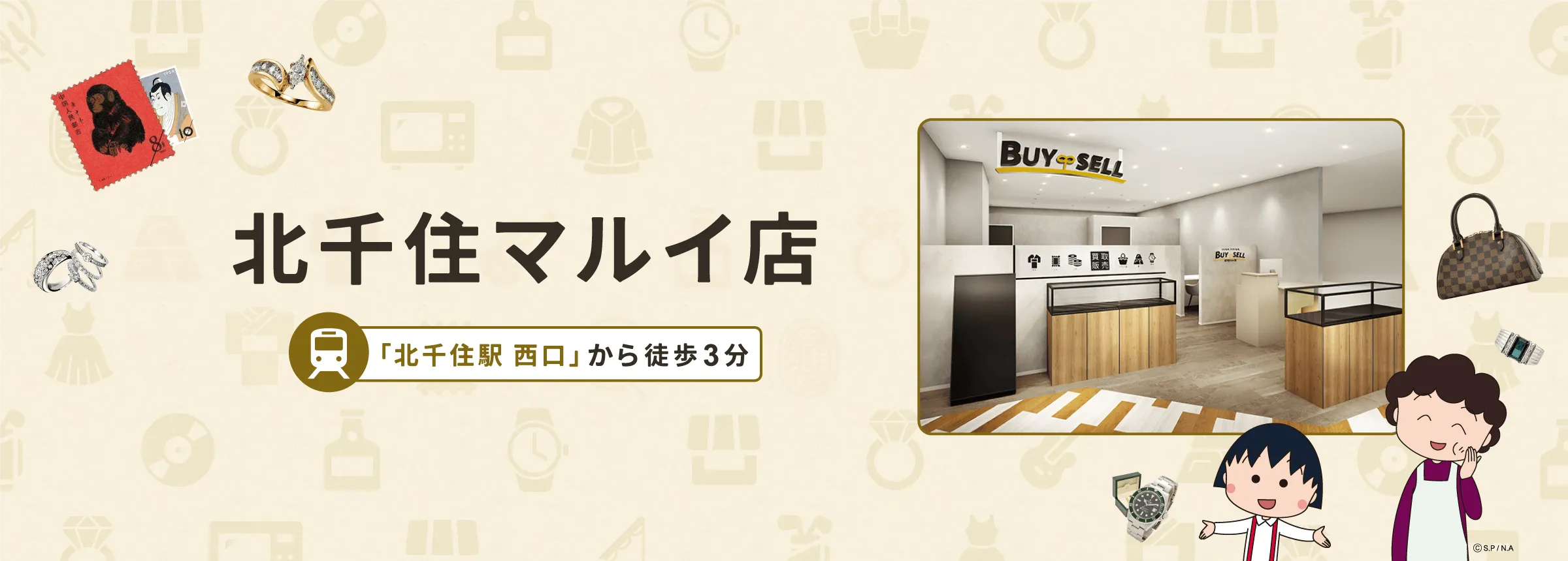 バイセル北千住マルイ店は、東京都足立区の北千住駅に直結する「北千住マルイ」の中に位置するリユースショップです。ブランド品やジュエリー、着物などの買取を行っており、経験豊富なスタッフが親切に対応してくれます。アクセスが便利で、駅から徒歩数分という立地の良さが特徴です。