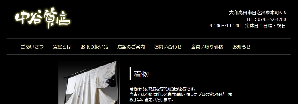 中谷質店は、店構え・HP共にシックな雰囲気の質屋です。