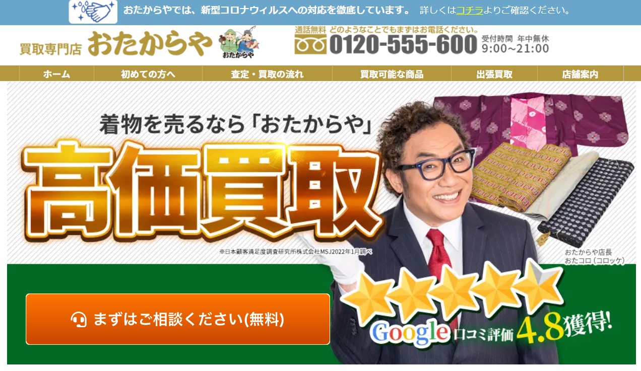 まずは奈良県で着物を売却する際に特におすすめしたい3社をご紹介します。いずれも最短即日・手数料無料で、奈良県内全域で出張査定を利用することができます。