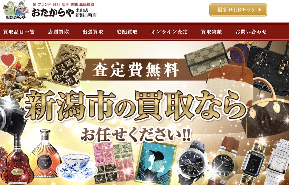 お宝なじら屋(1店舗) | ・店頭持ち込み ・出張 | ・店頭買取 ・出張買取 | ・駐車場完備の落ち着いた店内 ・ベテラン鑑定士の対面査定 ・出張買取は新潟県全域対応可能で出張費用は完全無料 ・なんでも買取りOK、古物全般OK | 公式HP |