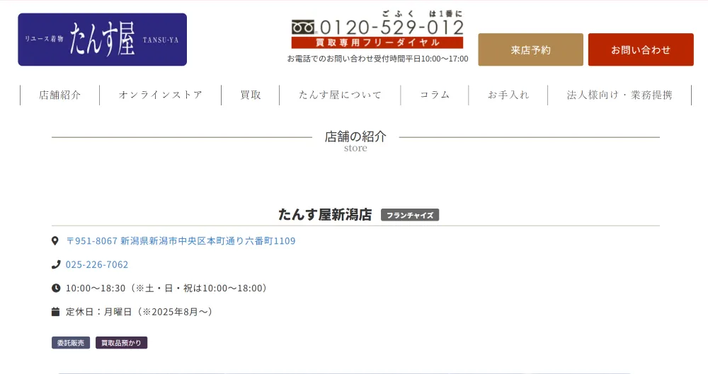 たんす屋新潟店は全国に約40店舗を展開するリユース着物専門店です。