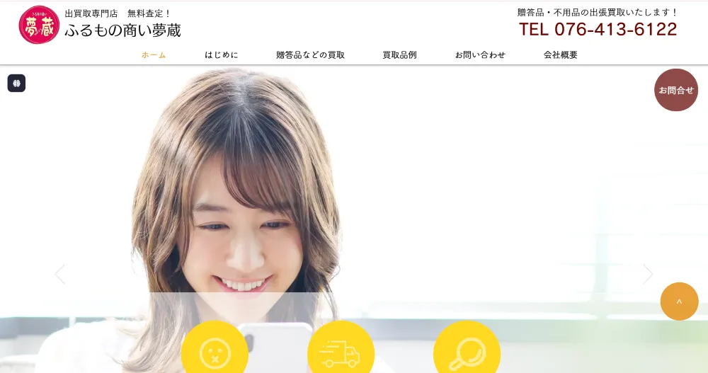 ふるもの商い夢蔵(1店舗) | ・店頭持ち込み ・出張 | ・店頭買取 ・出張買取 | ・富山県全域、出張費無料で買取 ・指定日時に経験豊富な査定士が訪問し鑑定 ・新しいもの、古いもの、贈答品、不用品など買取OK | 公式HP |