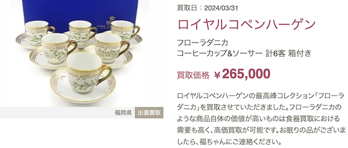 公式サイトではブランド食器の買取実績も公開されていますので、ぜひ気になった方は、以下より無料査定を受けてみてくださいね。