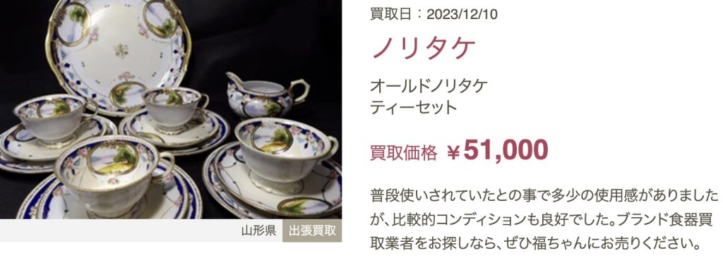もちろん、ノリタケ食器に関しても市場価値にあった適正な査定価格を提示してくれるので、高額買取にも十分期待できるでしょう。