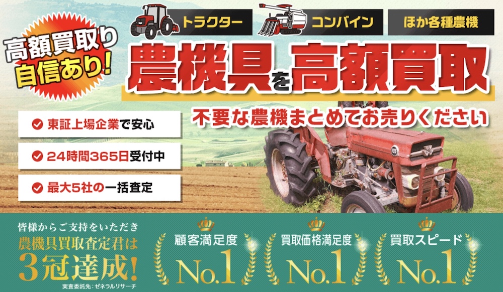 今回紹介した買取業者のなかでも、「農機具買取査定君」がおすすめです。