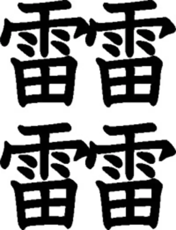 そこで、近くの図書館で大修館書店の『大漢和辞典』で調べてみた。すると、なんと362個の「雨」の漢字が載っていた! これはすごい。画数も「雨」の8画から始まり、最多画数は52画! その漢字は雷が4つで「びょう」という漢字である(上図参照)。