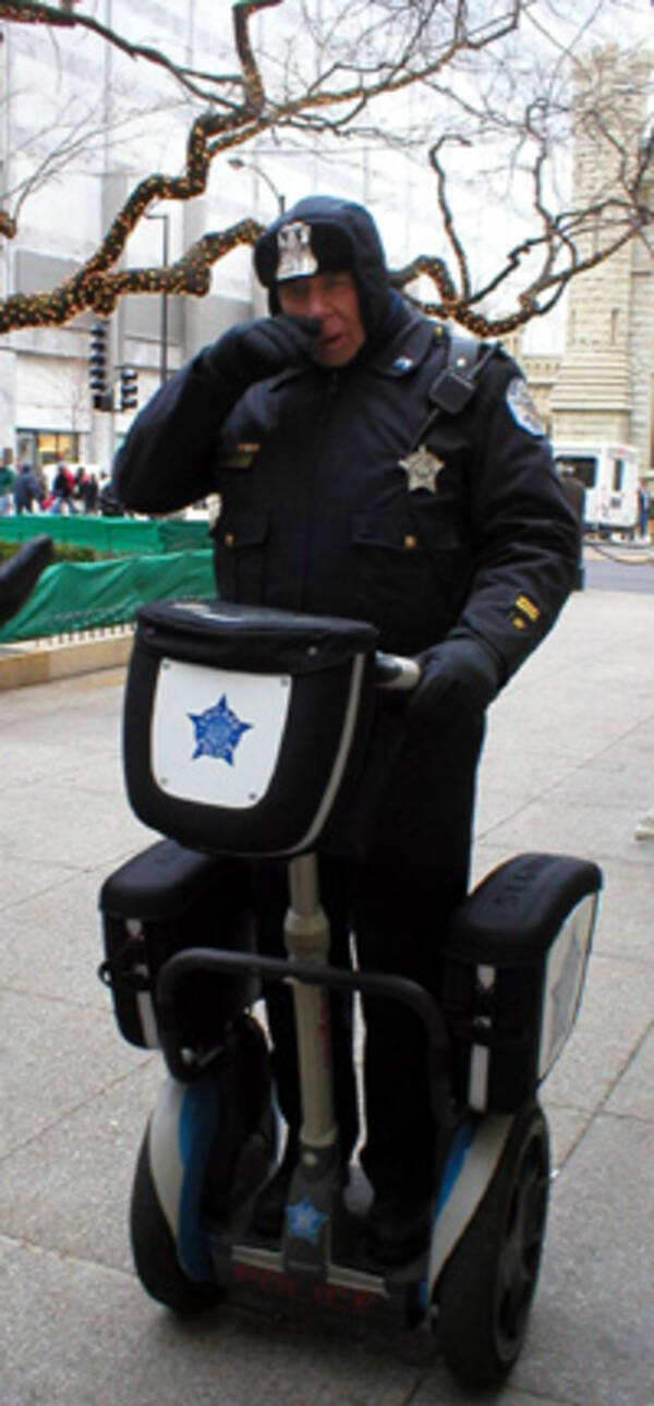 実はここシカゴでは、シカゴ警察署が使用している。シカゴのオヘア空港でケーススタディーを始めて以来、観光客が多く車の渋滞が多いダウンタウンでは「馬」に乗っていた警察官も現在では「セグウェイ」に乗っている。