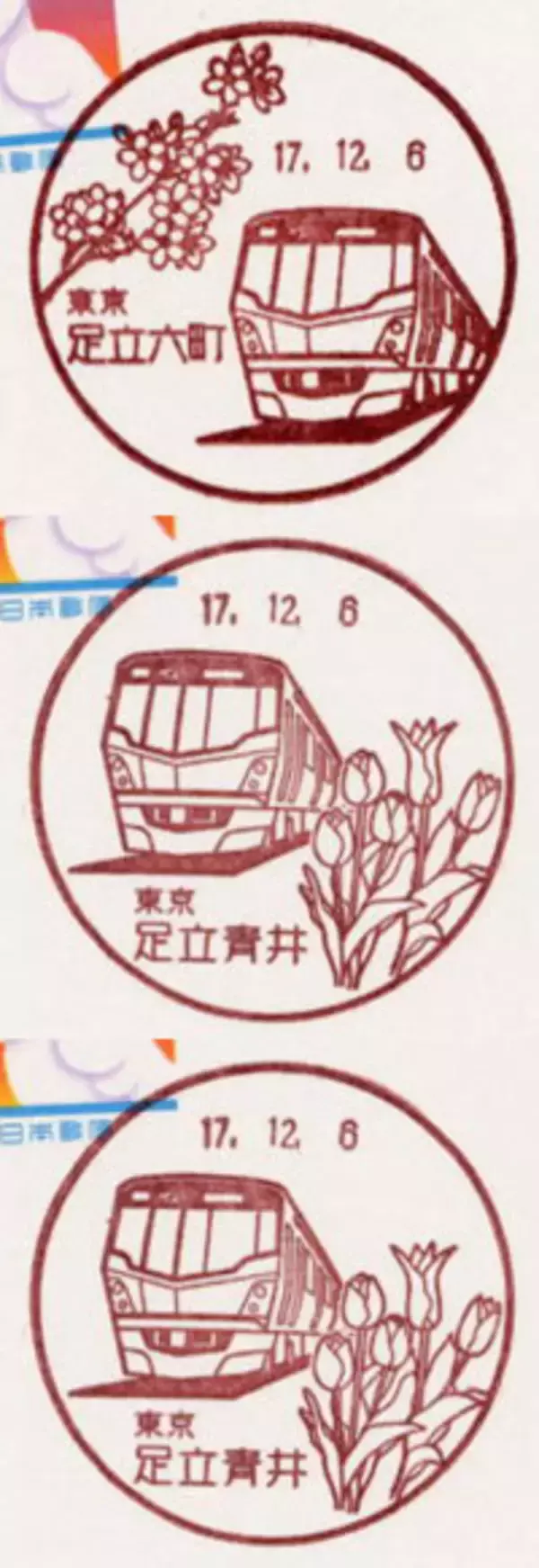 特に今まで鉄道が無かった、いわば鉄道空白地帯では、この路線に対する期待は大きく、新しく駅ができた足立区の足立六町局では、車両と桜が描かれた印を。同じく足立区の足立青井局では、車両とチューリップが描かれた印を、新たに設置しました。