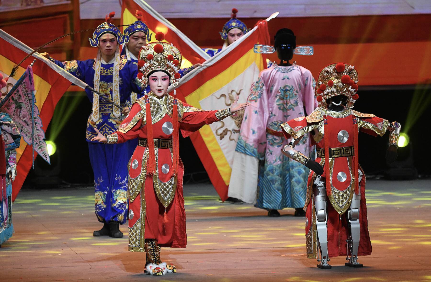 出演した人型ロボットは手のひらと拳を合わせてあいさつした後、武術の型を正確に決め、犬型ロボットはジャンプと後方宙返りをして安定的な着地を見せた。