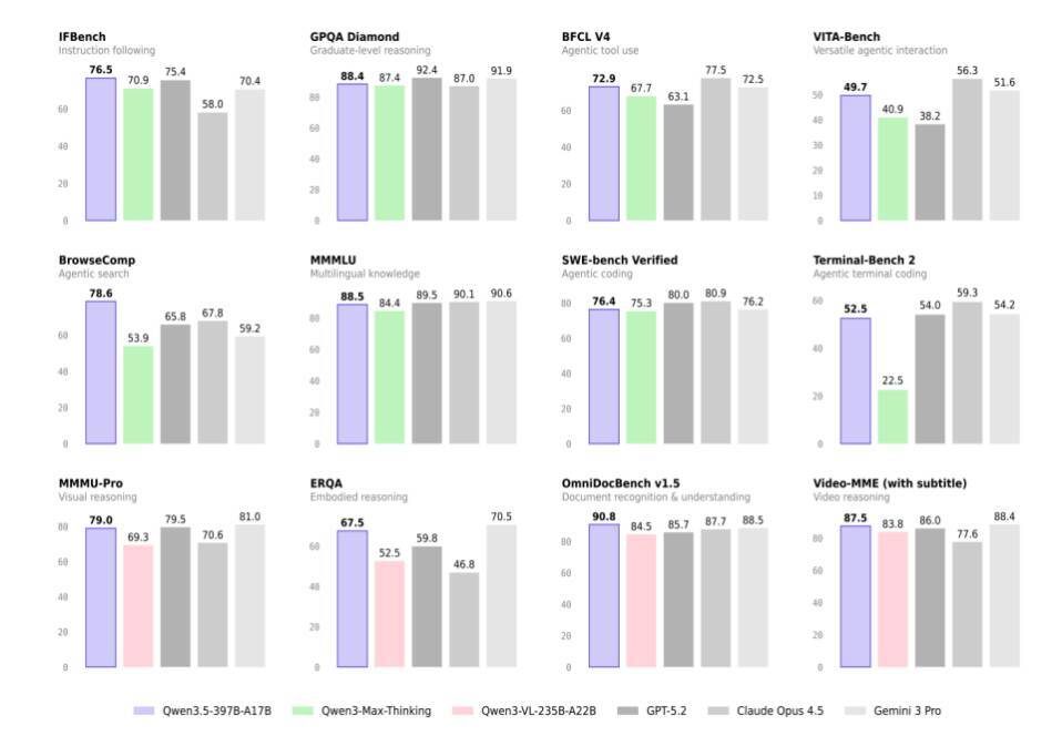 中国IT大手アリババグループは2月16日、次世代のAIモデル(LLM)「Qwen3.5-Plus」をオープンソース化した。本モデルは推論、プログラミング、エージェント機能など幅広いベンチマークテストで高い性能を示し、特に視覚理解分野の権威ある評価では複数項目で最高水準を記録した。