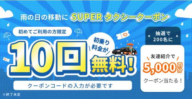 タクシーが超おトクになる「SUPER タクシークーポン」キャンペーン■新規ユーザー限定「初乗り10回無料」について