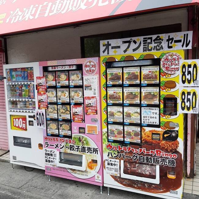 冷凍ハンバーグの自動販売機「ウルトラハンバーグBingo」は、静岡県で人気の「ハンバーグ専門店Bingo」と共同開発したこだわりのハンバーグを急速冷凍し、自動販売機用にパッキング。