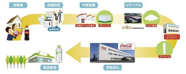 同社とウエルシアホールディングスは、2020年9月、栃木県内一部のウエルシア薬局店頭にて回収・分別された使用済みPETボトルを再原料化し、同社各工場にてコカ・コーラ社製品の容器として使用する「ボトルtoボトル」のモデルを構築することを目的とした実証実験を実施。