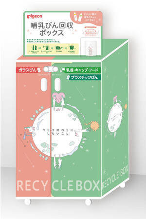 ピジョンの哺乳器はプラスチック製と耐熱ガラス製の2種類があり、プラスチック製の哺乳びんはプラスチックを細かく素材別に分別し、回収する仕組みがなく、また耐熱ガラス製の哺乳びんは特殊なガラスのため、一般的に「資源ごみ」ではなく「不燃ごみ」として扱われることから、哺乳器においてはリサイクルが進んでいないのが現状だという。
