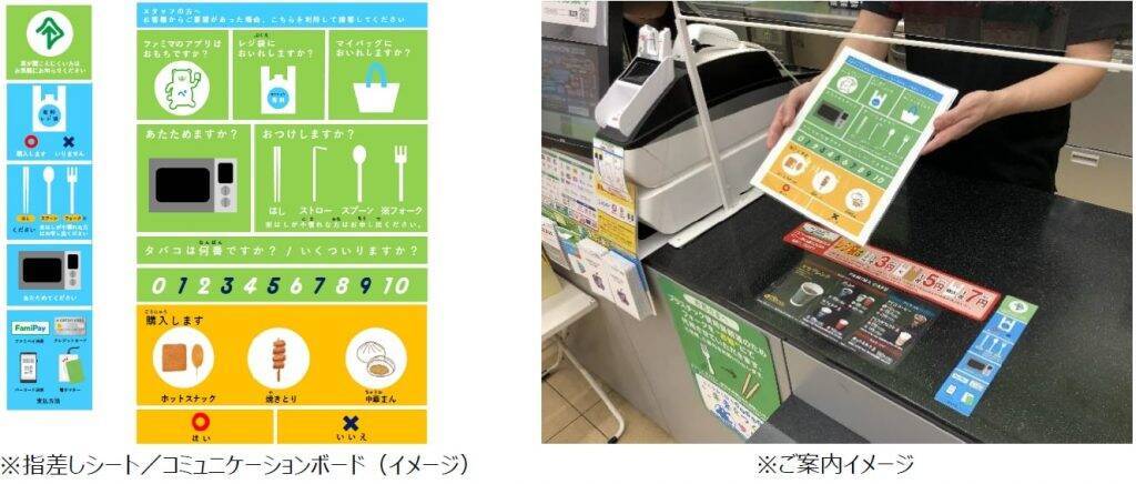 ファミリーマートは、「指差しシート」と「コミュニケーションボード」の活用により、利用客とのコミュニケーションをより図り、必要なサービスや商品の購入をサポートしていくとしている。