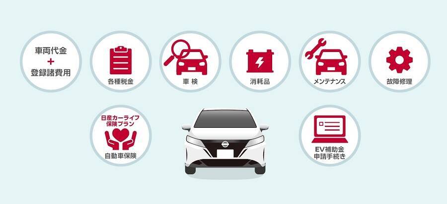日産、全諸費用をまとめて月々の定額利用料で支払う日産のサブスク「おまとめプラン」発売今回発売する「おまとめプラン」は、新車取得時にかかる車両代金や登録諸費用に加え、クルマを利用する上で必要となる各種税金、車検や定期点検、消耗品の交換、故障修理などの諸費用、さらには自動車保険も組み込んで、定額の月額利用料として支払うサブスクリプション商品。具体的には、車両本体価格から車両の残価を差し引いた額と、その他諸費用を足した総額を契約月数で割った金額が、ユーザーが支払う月額利用料金となる。