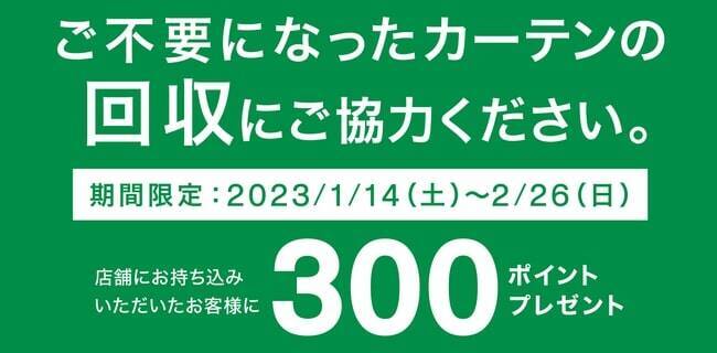 期間中、カーテンを店頭に持ち込んだ人には、協力への感謝の気持ちをこめて、ニトリポイントを300ポイントプレゼントするとのことだ。