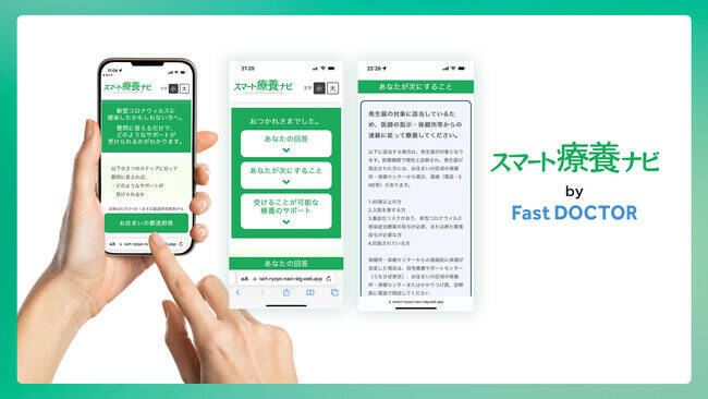 ファストドクター、Webサービス「スマート療養ナビ」を提供開始「スマート療養ナビ」は、新型コロナウイルスへの感染が疑われたり陽性が発覚した場合に、スマートフォンで都道府県や検査結果、基礎疾患の有無を選択することで、自身の取るべき行動の案内や公的なサポートについて簡単に知ることができるサービス。