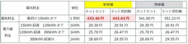 ■「eo電気」料金 新旧料金単価比較