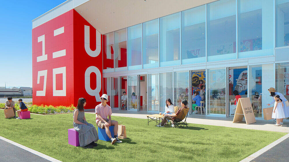 外観にオブジェのような7メートル×7メートルの巨大なロゴを配置し、店舗の内外に買い物の合間にゆっくりくつろぐことのできるエリアや子どもが遊べるエリアなどを用意。季節の花を販売する「UNIQLO FLOWER」なども用意されているという。