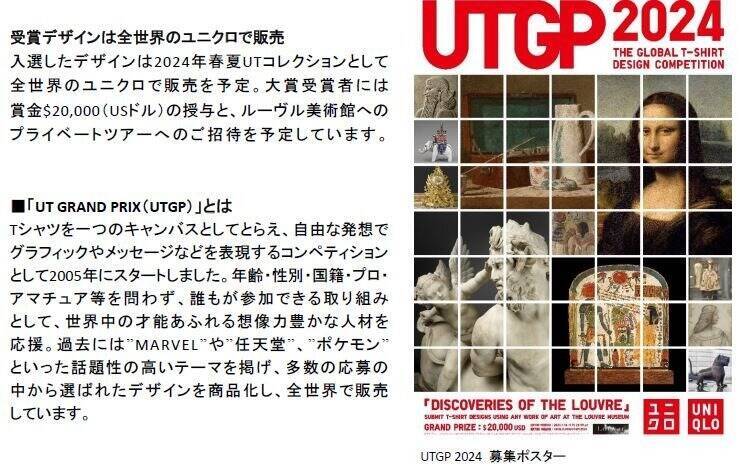 「UT GRAND PRIX 2024」開催ルーヴル美術館とユニクロは、2021年よりパートナーシップ締結し、ユニクロがスポンサーする教育プログラムや「UT」とのコラボレーションを通してアートに触れる様々な機会を提供。