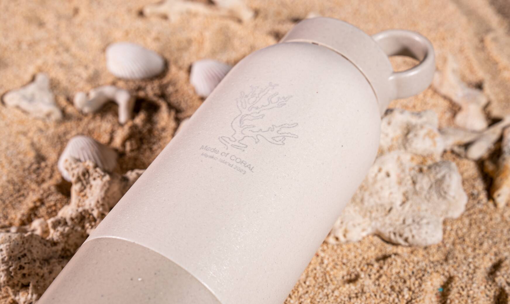 出典:アサヒユウアスモール(https://asahiyouus.official.ec/items/75526523)——今回ご紹介いただく商品・サービスについてお聞かせください。養殖活動で育たなかったサンゴから作られている「海のマイボトル」です。アサヒユウアスさんがハヤシコーポレーションさんと協業して作ったもので、1本の売り上げにつき100円がサンゴの保全と養殖を行う伊良部島環境協会に寄付される仕組みになっています。