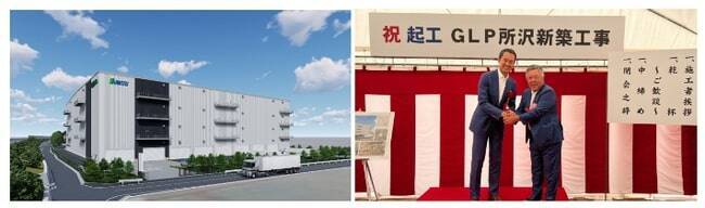 (左)関東新物流センター(仮称)外観完成イメージ(右)起工式の様子関通の関東新物流センター(仮称)となる「GLP所沢」は、日本GLPとしては初めて関越自動車道の至近に開発する物件。
