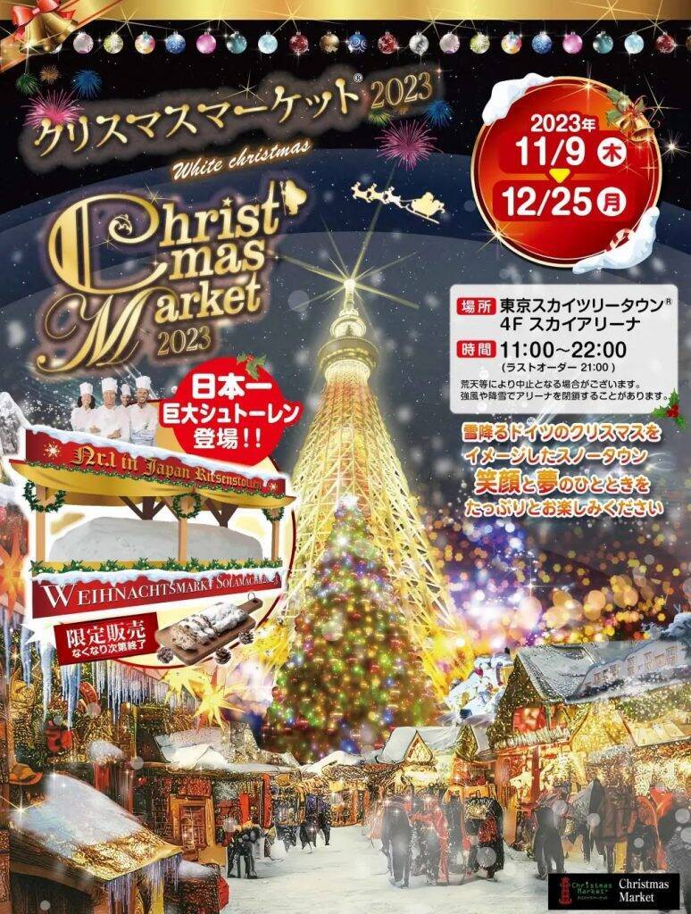 東京ソラマチにて11月9日より「クリスマスマーケット2023」開催同イベントでは、雪景色のクリスマスマーケットを再現した雪装飾の中、本場ドイツから輸入したサンタやトナカイのモニュメントを施した豪華なヒュッテ(ヨーロッパ式小屋)が並ぶという。