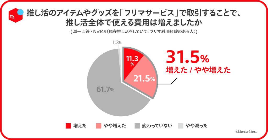 フリマサービス利用経験者に推し活の予算について聞いたところ、31.5%が「フリマサービスで推し活グッズを売り買いすることで、推し活全体の予算が増えた」と回答。