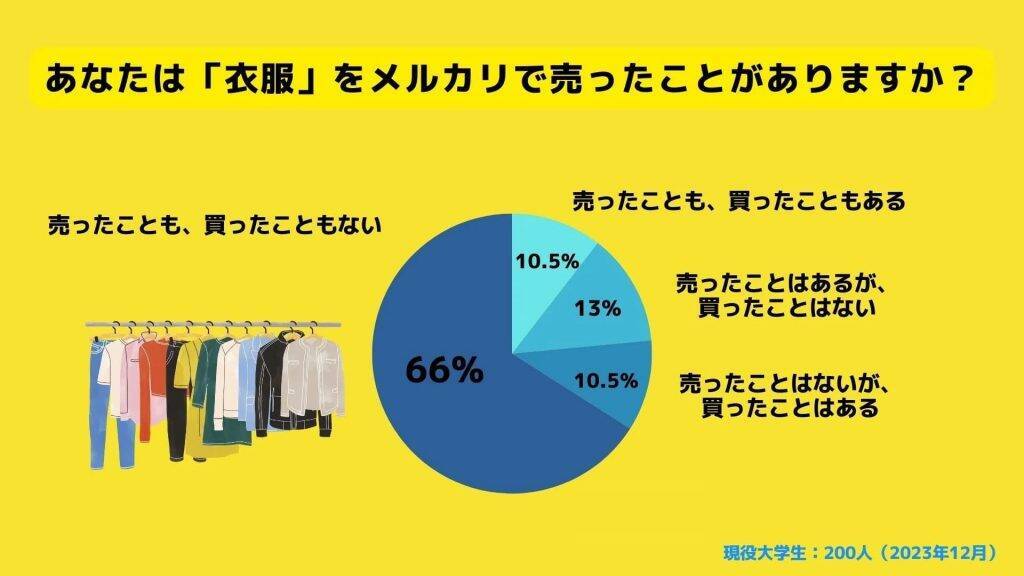 調査の結果、大学生の約2人に1人がメルカリで何かを売った経験があることが判明し、メルカリは大学生の間でも流行していることが伺える結果に。メルカリで何かを売ったことがあるか