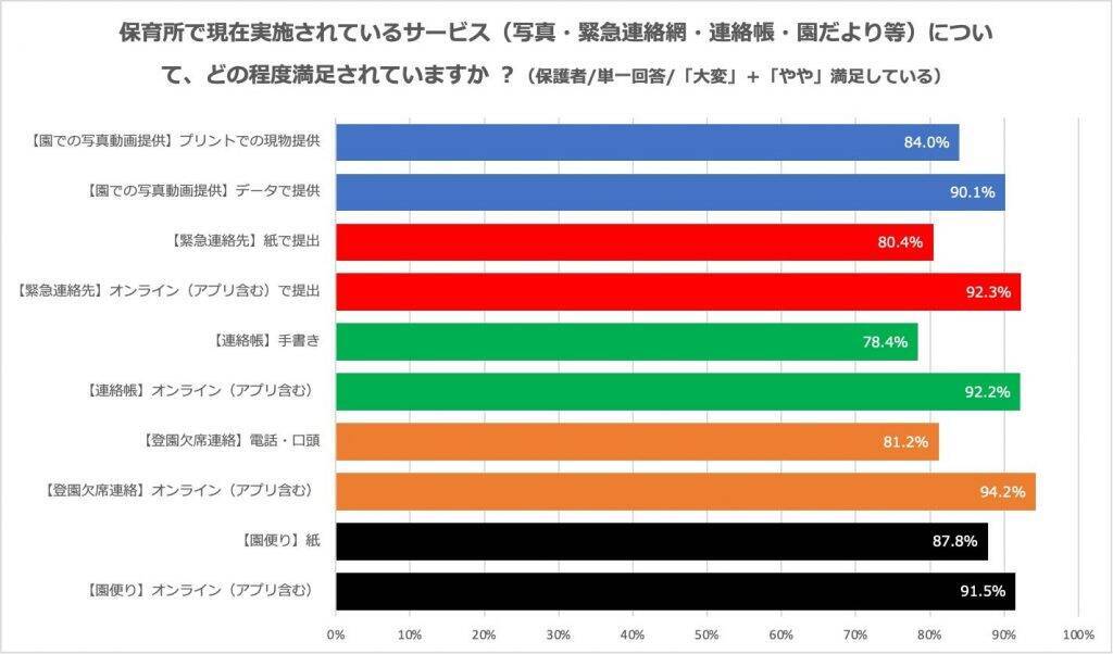 これらの結果から、保護者-保育所間のコミュニケーション方法は、オンラインの方が望まれていると同社は考察している。