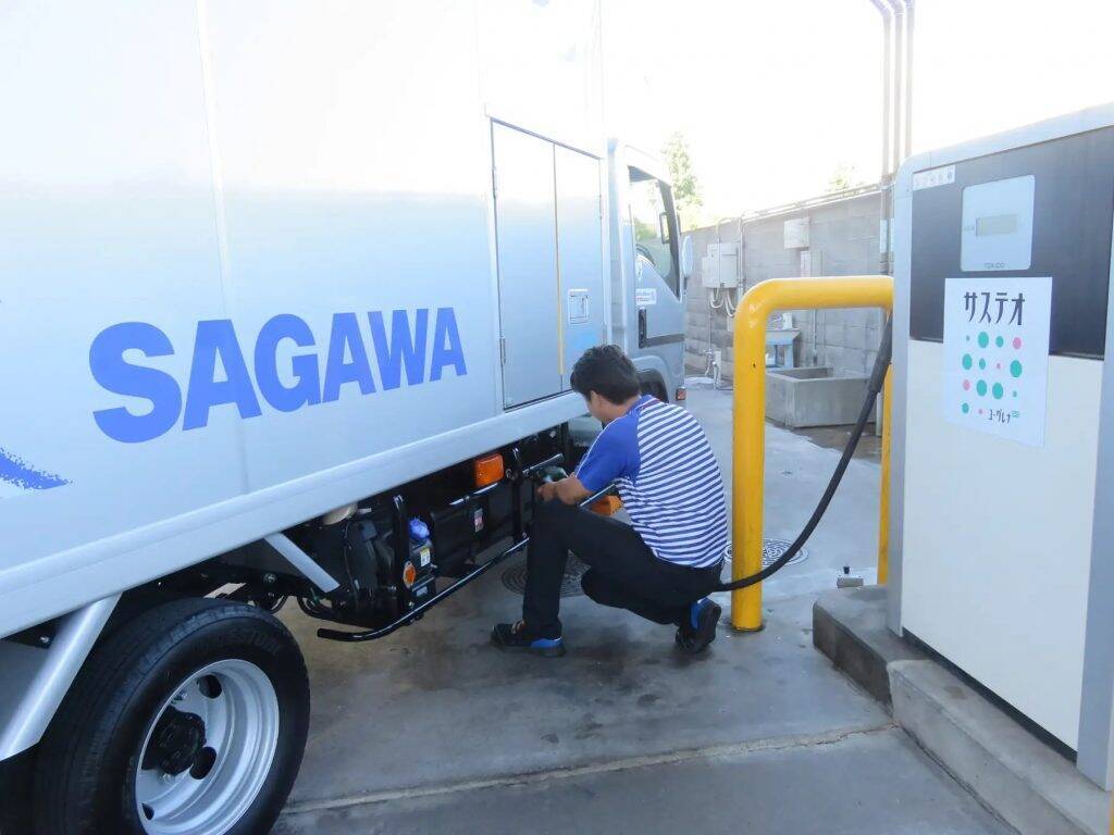 佐川急便のトラックに「サステオ」を給油している様子佐川急便とユーグレナ社は、2023年6月より、ユーグレナ社の公式通販サイト「ユーグレナ・オンラインショップ」特設ページにて、持続可能な社会の実現に向けて温室効果ガスの排出量削減に取り組む「サステナブル配送プロジェクト」の賛同を募ってきたという。