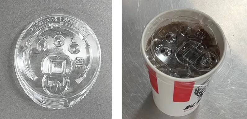 今回、全店舗導入となった同品は、一般的な「ドリンキングリッド」に比べて厚みがない平らな形状となっており、よりプラスチック使用量を削減できるという。
