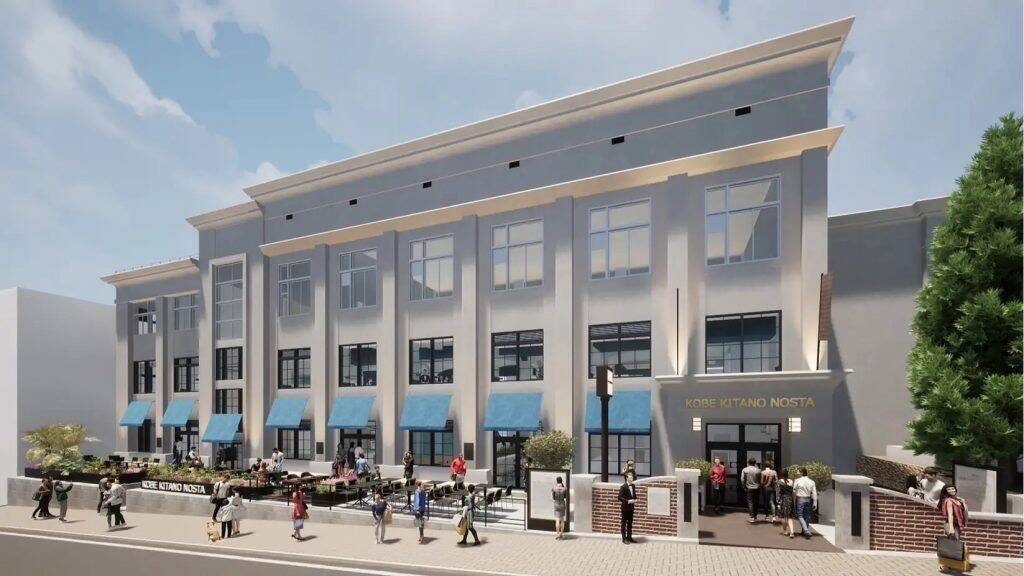 神戸の「食」を楽しめる複合施設「神戸北野ノスタ」が2024年秋開業施設名である「神戸北野ノスタ」は、元小学校の施設として、「ノスタルジック(懐かしい、偲ぶ)」からとったもので、神戸北野にある「食」をテーマとした施設として、「ノース+食べる」の造語だという。