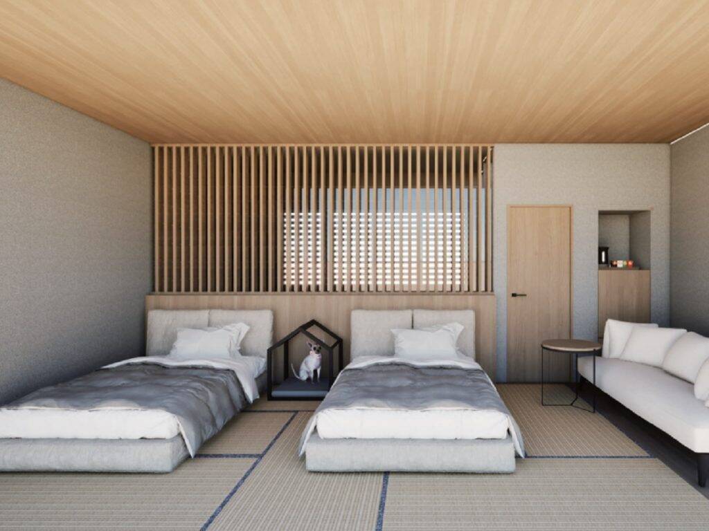 愛犬用ベッドも完備の客室 ※イメージ同施設は、「愛犬と一緒にほっと一息」をテーマとする小型犬同伴専用の温泉旅館。愛犬と一緒に温泉や食事を堪能しつつ、ドッグランで遊んだり、フォトスポットで想い出を残したりと愛犬と向き合える時間と空間が充実しているという。