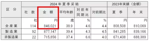(※2)一般財団法人 労務行政研究所「東証プライム上場企業の 2024 年 夏季賞与・一時金(ボーナス)の妥結水準調査」