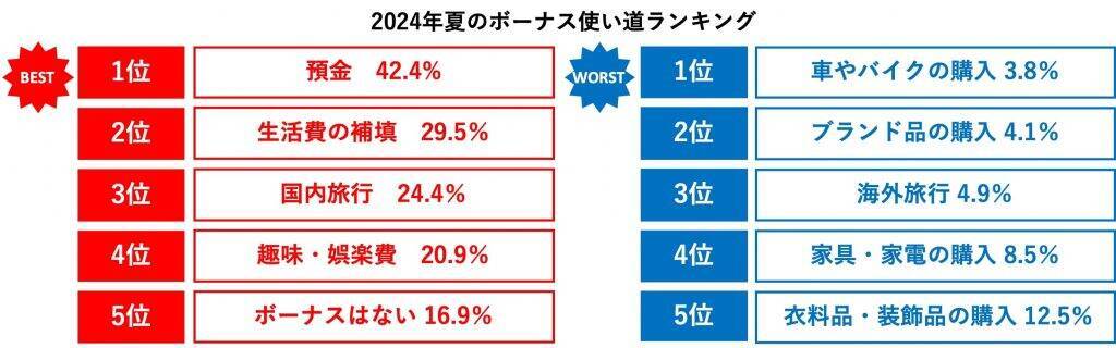 ■2024年夏のボーナスの使い道は「預金」「生活費の補填」が上位に