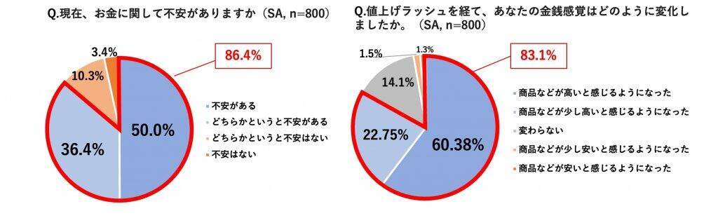 また、8割以上の人が、値上ラッシュ前よりも商品・サービスなどが高いと感じるようになったと回答。