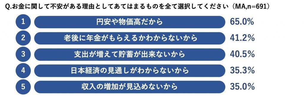 円安や物価の上昇は日々の生活に直結するため、多くの人々がお金に対して不安を感じていることが伺える。