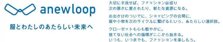 資源循環サービス「anewloop」開始「anewloop」は、ルミネ・ニュウマンの店頭およびネット通販「アイルミネ」で利用者の不要になったファッションアイテムを買取・回収し、リユース・リサイクルにつなげるサービス。