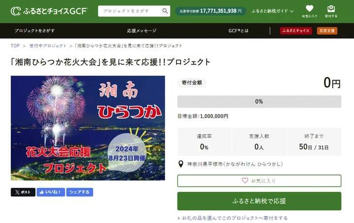 プロジェクト名: 「湘南ひらつか花火大会」を見に来て応援!!プロジェクト