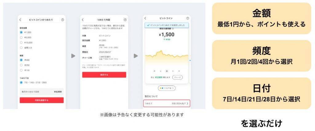メルコイン、「ビットコインつみたて機能」を提供開始「ビットコインつみたて機能」では、メルカリアプリでつみたての金額・頻度・日付を設定するだけで、自動的にビットコインをつみたてることが可能だという。
