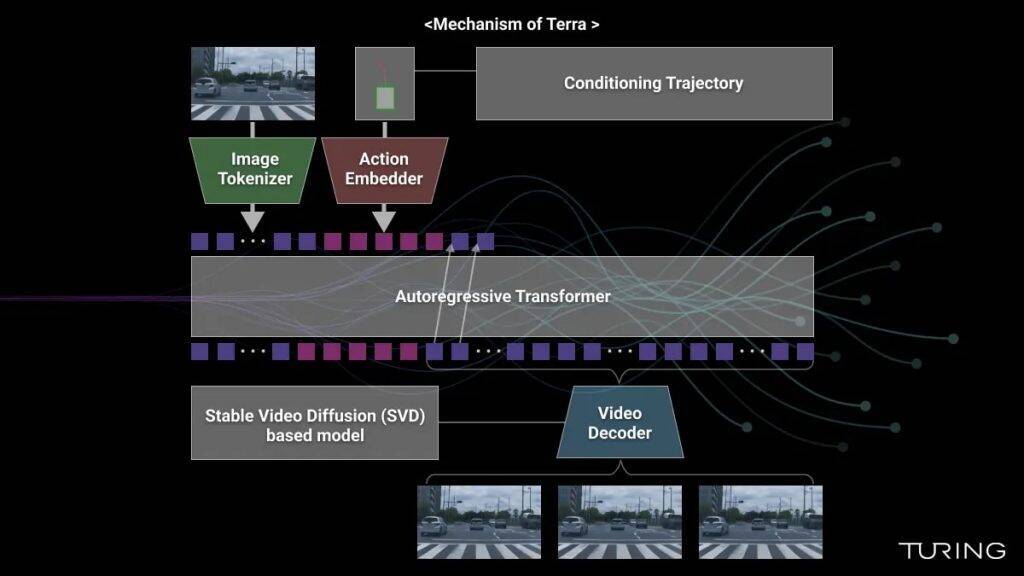 Terraの仕組み同社は、言語理解を行うLLM(大規模言語モデル)、複数種類のデータを元に高度な判断を行うマルチモーダルAI、空間把握と身体性を持つエンボディードAI、という3つのステージを経ることにより、2030年までに完全自動運転車両を開発することを目指している。
